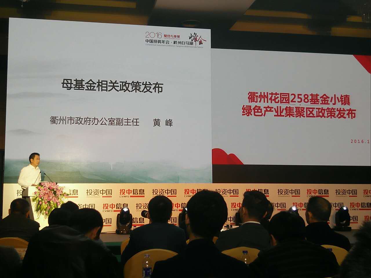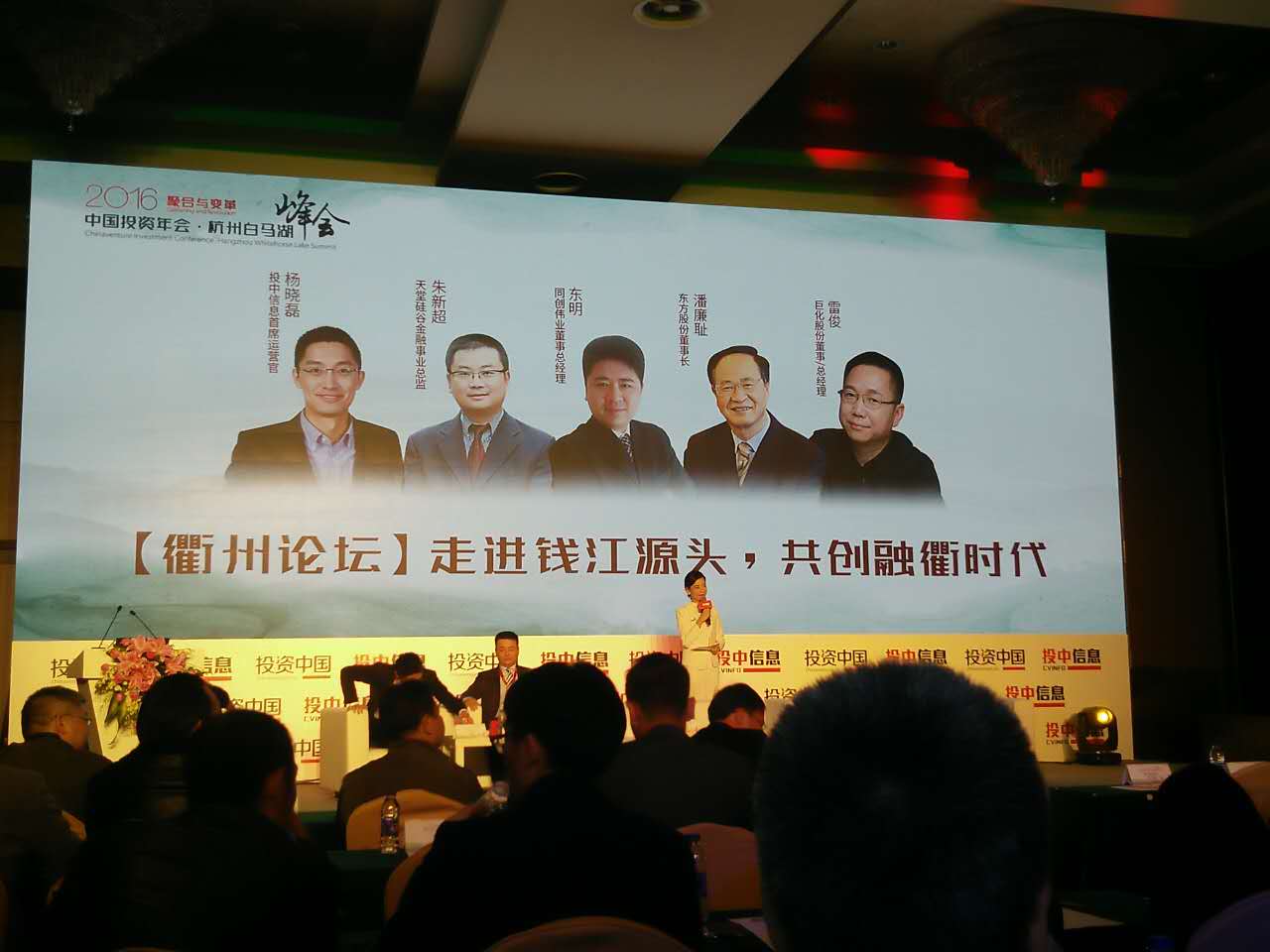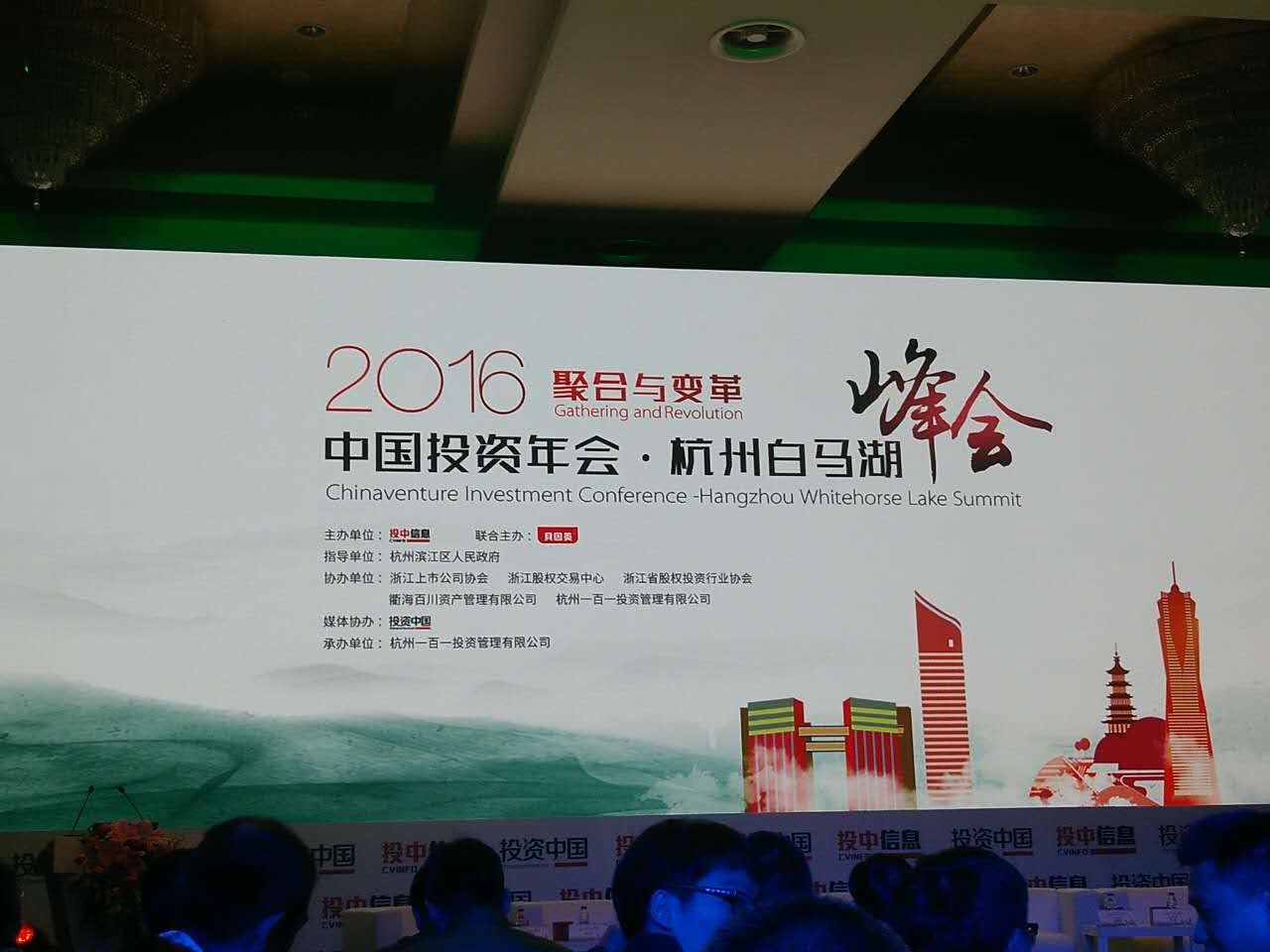 11月23日至24日,2016聚合與變革·中國投資年會·杭州白馬湖峰會在杭州召開。江山市副市長巫小雄率隊參加峰會,公司總經(jīng)理章群峰參加,并與相關(guān)投資公司進行意向?qū)?。