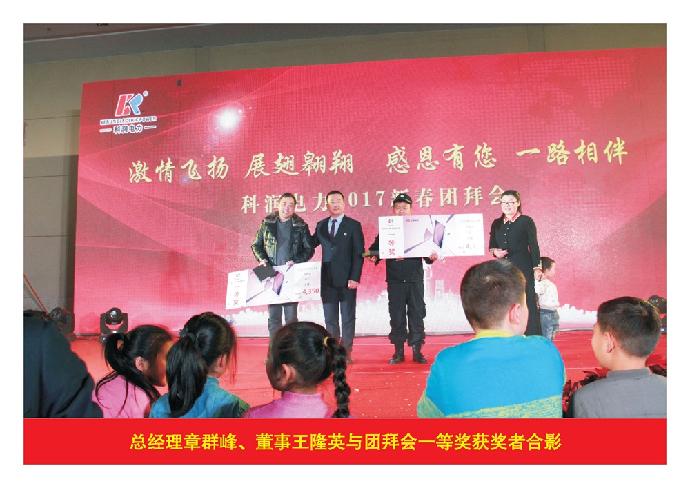 2017年1月20日,公司隆重舉辦了“激情飛揚(yáng) 展翅翱翔 感恩有您 一路相伴”科潤電力2017新春團(tuán)拜會,公司股東、領(lǐng)導(dǎo)及全體員工、家屬,近1000多人參加了團(tuán)拜會。