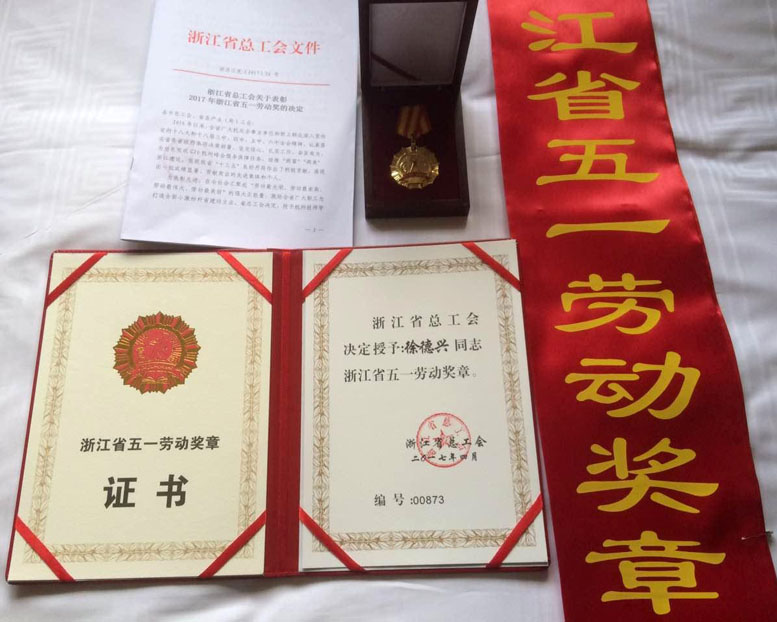 喜訊:我司員工徐德興榮獲“浙江省五一勞動獎章”