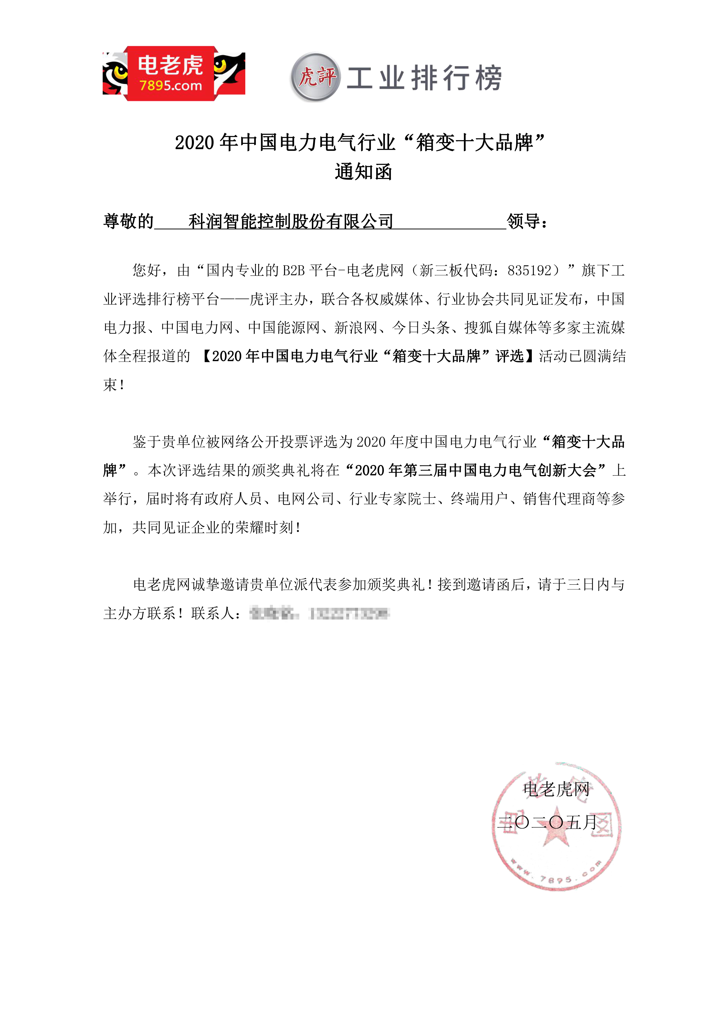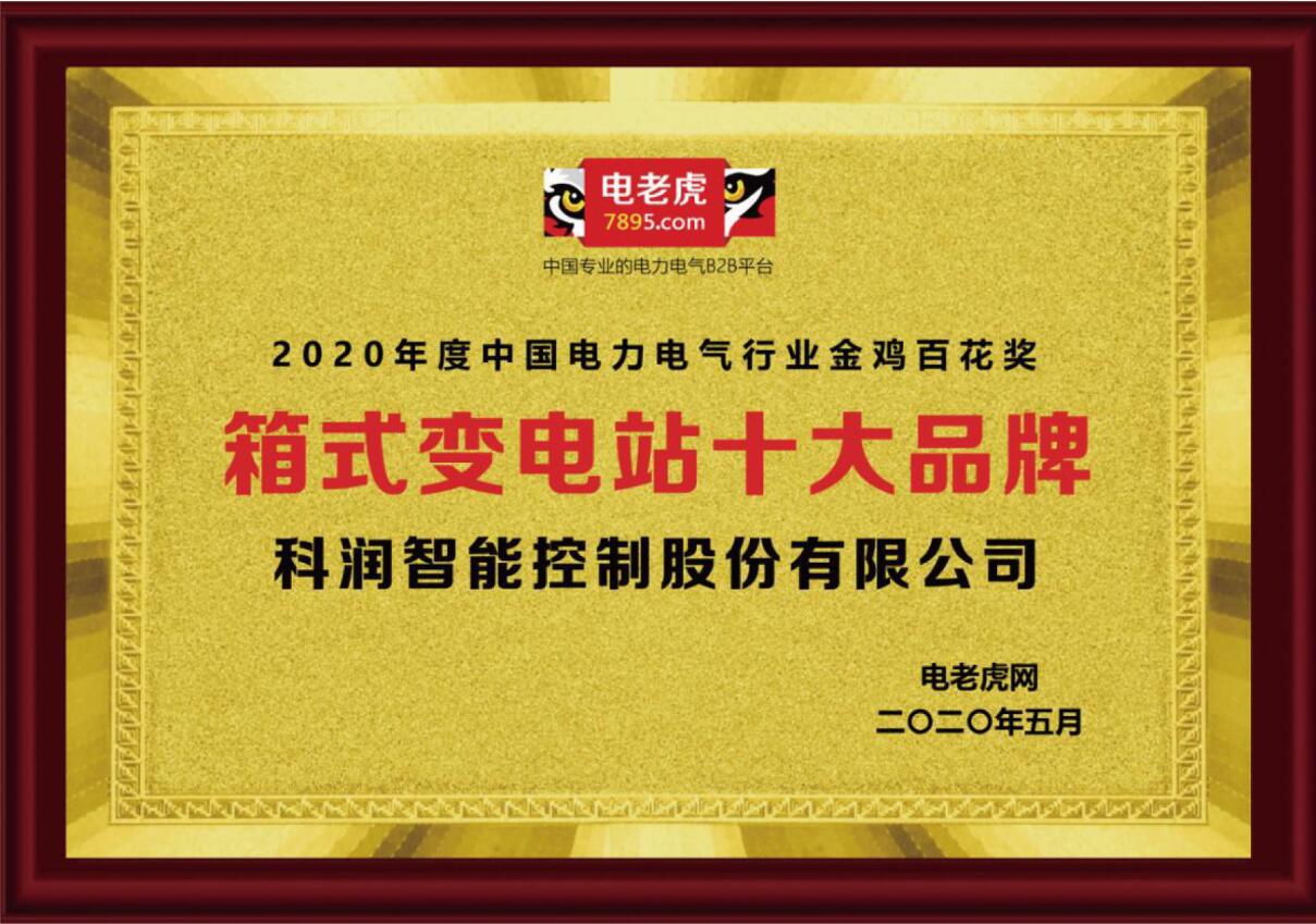 我公司在參選的91家企業(yè)中脫穎而出,入圍前十名,被評選為2020年度中國電力電氣行業(yè)“箱變十大品牌”。