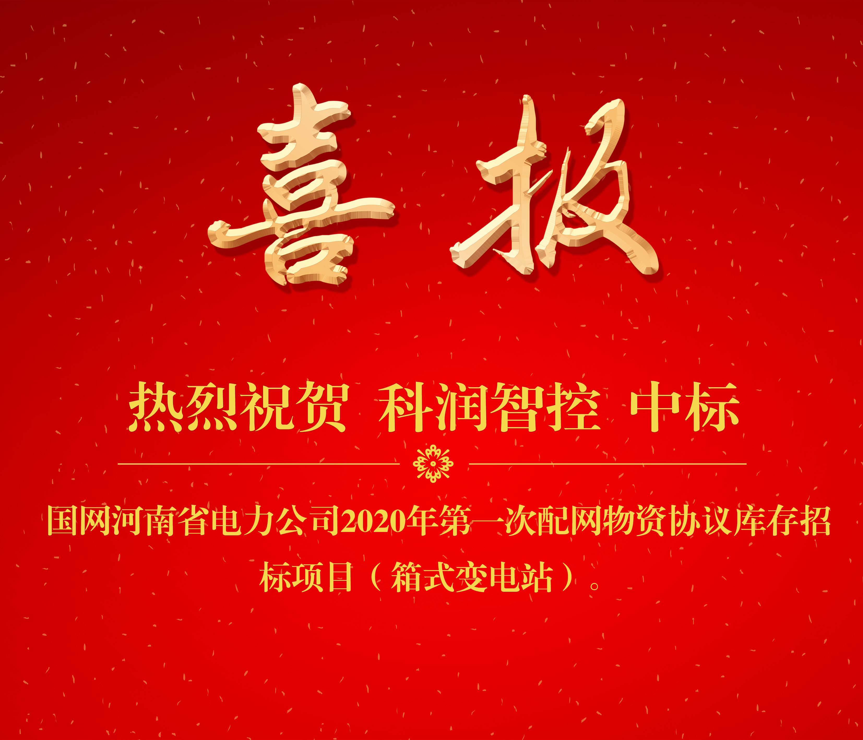 熱烈祝賀我司中標國網(wǎng)河南省電力公司2020年第一次配網(wǎng)物資協(xié)議庫存招標項目(箱式變電站)。