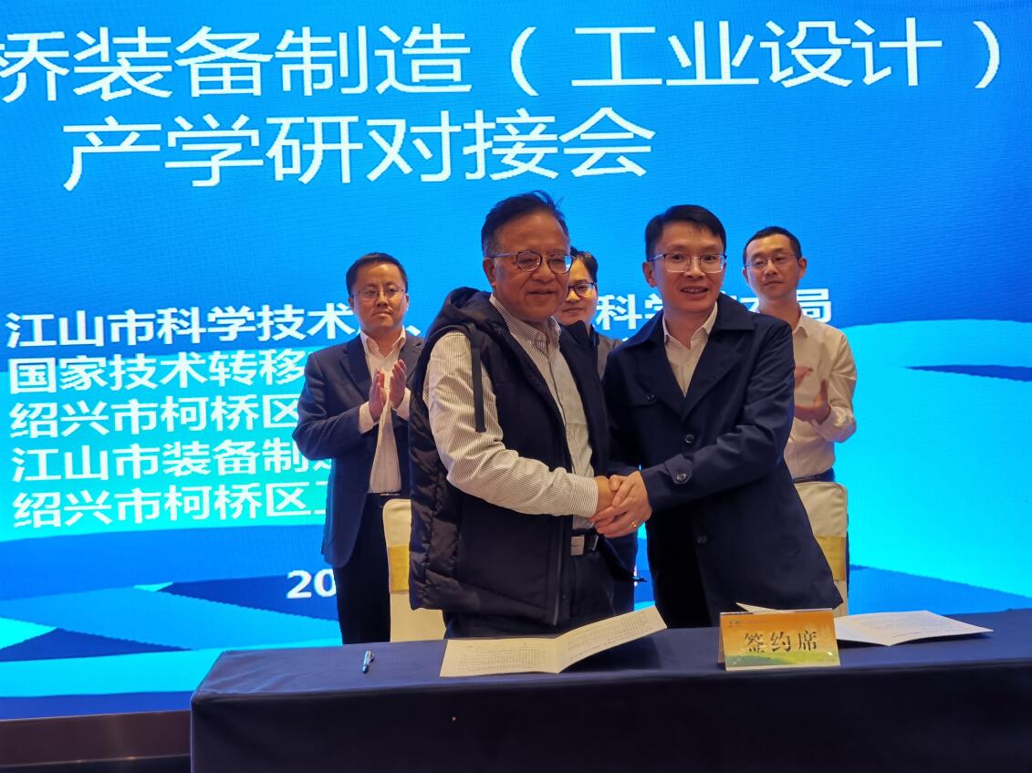 2020年11月11日,公司董事長(zhǎng)王榮參加了江山市科技局與柯橋區(qū)科技局聯(lián)合舉辦的“江山?柯橋裝備制造(工業(yè)設(shè)計(jì))產(chǎn)學(xué)研”對(duì)接活動(dòng)。同時(shí),代表江山市裝備制造企業(yè)簽署戰(zhàn)略合作協(xié)議,為進(jìn)一步推進(jìn)我市裝備制造行業(yè)發(fā)展砥礪前行。