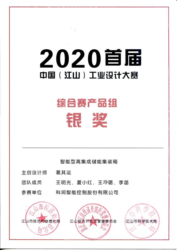 熱烈祝賀公司智能型高集成儲能集裝箱產(chǎn)品榮獲2020首屆中國(江山)工業(yè)設計大賽綜合賽產(chǎn)品組銀獎