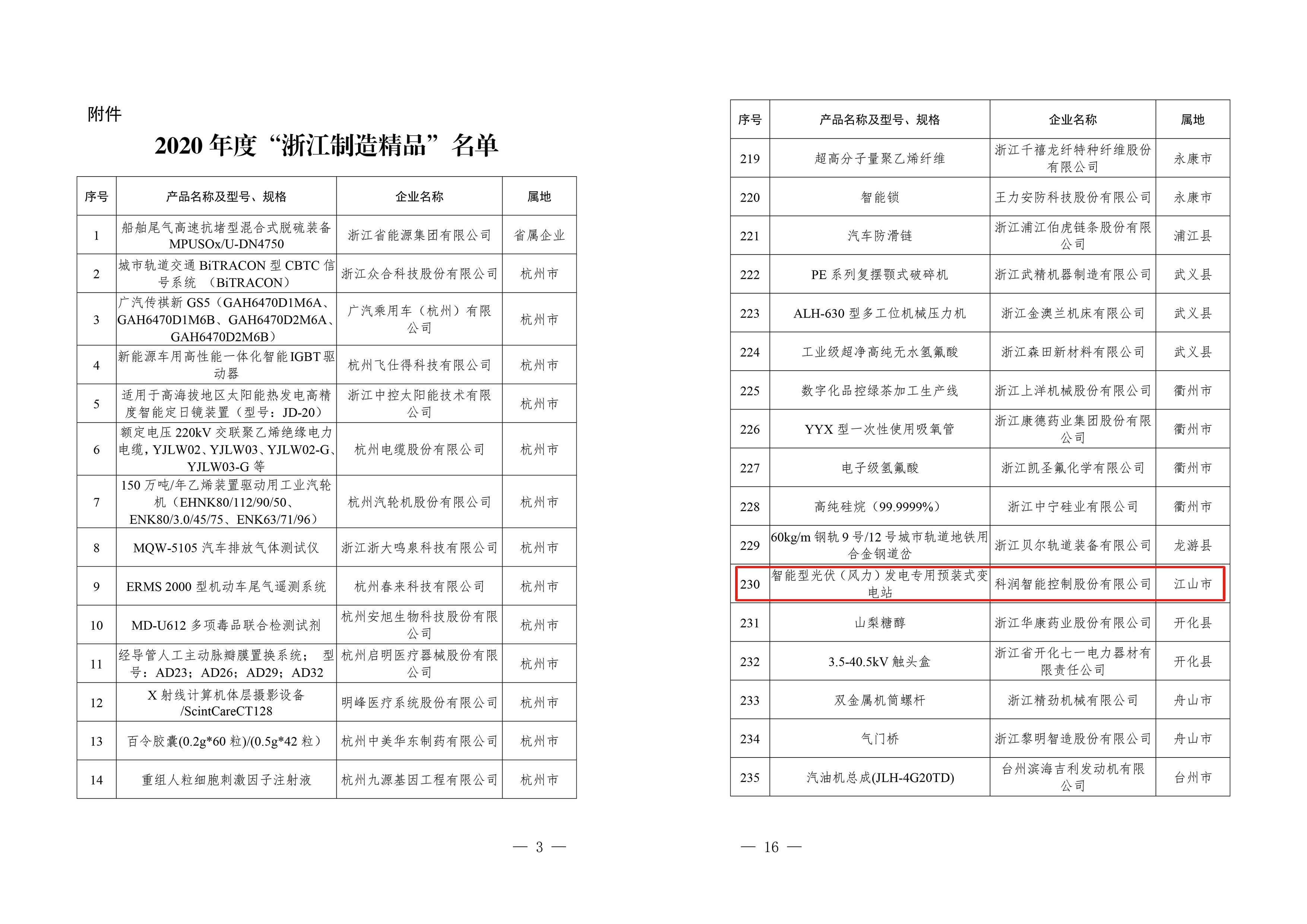 熱烈祝賀公司“智能型光伏(風(fēng)力)發(fā)電專用預(yù)裝式變電站”產(chǎn)品被浙江省經(jīng)信廳認(rèn)定為2020年度“浙江制造精品”!