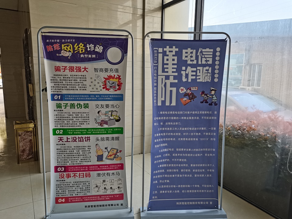 公司分別在公共區(qū)域和宣傳窗制作、擺放了防詐騙海報、橫幅、倡議書等,積極響應(yīng)上級部門反詐騙宣傳,時刻提醒廣大員工提高防詐意識,避免財產(chǎn)損失。