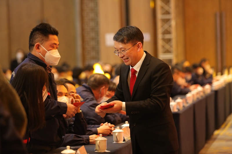 會議最后,王榮董事長攜公司領(lǐng)導(dǎo)給全體員工發(fā)放新年紅包。