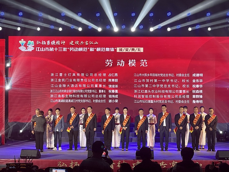 4月28日下午,江山市舉行第十三批“勞動模范”和“模范集體”頒獎典禮,充分調動全市勞動者秉承和弘揚勞模精神、勞動精神,積極投身經(jīng)濟社會發(fā)展大局,在“奮力打造三省邊際展示中國式現(xiàn)代化浙江篇章衢州實踐的示范窗口”中凝聚前行合力,激發(fā)創(chuàng)造活力,為實現(xiàn)“衢州當龍頭、全省爭上游”目標貢獻力量。市委書記朱素芳致辭,市領導何日根、朱永平、毛正彩、周立武等參加,公司總經(jīng)理章群峰獲評“勞動模范”榮譽稱號上臺領獎并發(fā)言。